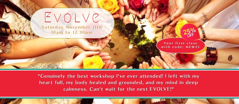 “Genuinely the best workshop I’ve ever attended! I left with my heart full, my body healed and grounded, and my mind in deep calmness. Can’t wait for the next EVOLVE!” – Fliss